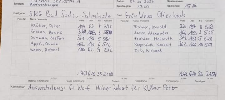 Im Endeffekt fehlten dem Team um Stefan Schwan dann ganze 46 LP wobei die Ergebnisse des Quartetts auch teilweise ausbaufähig waren. Schwan selbst im zweiten Einsatz des Wochenendes kam auf 557 LP, Bruno Gieron erreichte 550 LP. Oswin Appel kam auf 512 LP und Peter Klüber/Robert Weber erspielten leider nur 489 LP.