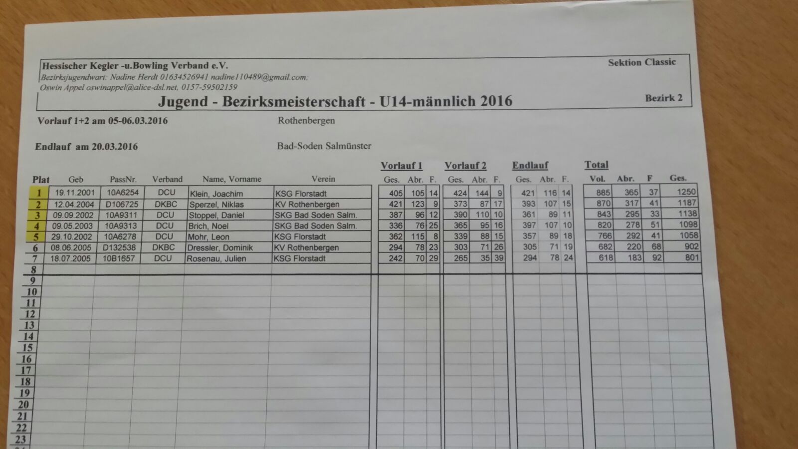 und Noel Brich der sehr gute 397 LP kegelte holte sich den vierten Platz und beide