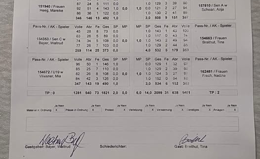 Ordentliche Ergebnisse und ein ungefährdeter Sieg stand für das Team um Nadine Frech am Ende zu Buche. Mit 6 zu 0 und 2099 zu 1821 konnte jede Akteurin wichtige Mannschaftspunkte einfahren.