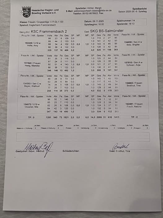 Ordentliche Ergebnisse und ein ungefährdeter Sieg stand für das Team um Nadine Frech am Ende zu Buche. Mit 6 zu 0 und 2099 zu 1821 konnte jede Akteurin wichtige Mannschaftspunkte einfahren.