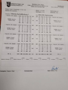 Nach längerer Pause durften auch unsere Mädels wieder ins Spielgeschehen eingreifen. Bei der Viktoria Aschaffenburg 1 konnte das Team um Tina Breithut am Ende mit 5 zu 1 gewinnen. Das Endergebnis lautete 2030 zu 2014, was aufzeigte, dass es eine sehr knappe und umkämpfte Angelegenheit war.