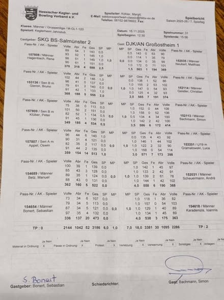 Zum Ende hatten auch Manuel Betz und Sebastian Bonert keine großen Momente um es nochmals spannend zu machen. Manuel Betz kam auf 522 LP und verlor gegen André Scheuermann 558 LP und Sebastian Bonert kam nie in die Partie, erreichte 473 LP mit zu vielen Fehlwürfen. Er gab seinen Punkt gegen Ioannis Karadenizis 538 LP ab.