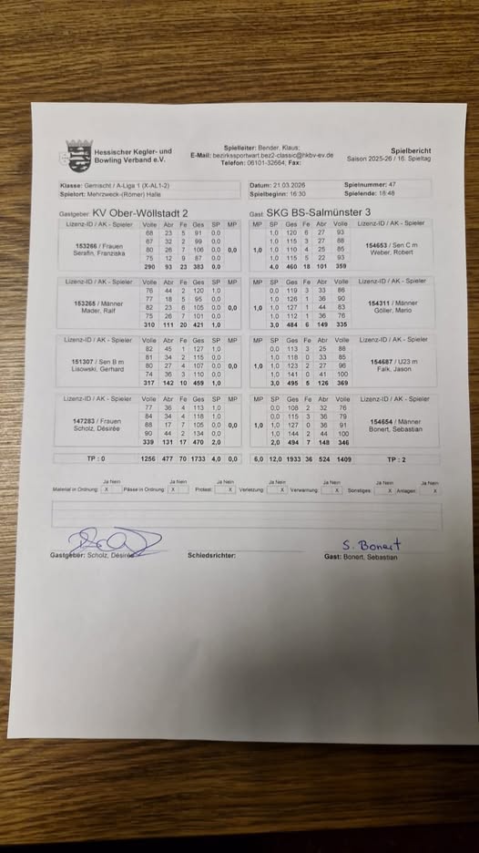Leider gab es die etwas erhoffte Schützenhilfe vom dritten, KV Rothenbergen an diesem Spieltag gegen Hainstadt 3 nicht und so beendete die Mannschaft von Robert Weber die Saison vorzeitig mit 21 zu 7 Punkten. 2 Spieltage stehen dennoch aus, welche Hainstadt zu gehen hat. Gegen Wölfersheim und Klein Auheim kann die SKG noch auf Hilfe hoffen und muss leider zuschauen was passiert. Dennoch war es eine sehr positive Saison auf den Abstieg im Vorjahr.