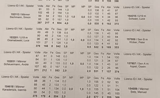 Im Mittelfeld setzten sich die Gastgeber dann aber ab, denn Simon Bachmann mit 604 machte ein starke Partie. Er gewann gegen Luca Schwan 535 LP. Peter Klüber mit 522 LP unterlag Luca Gramatowski 542 LP.