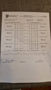 Mit einem deutlichen 6 zu 0 Erfolg und einem Gesamtergebnis von 2032 zu 1940 holte das Team um Bruno Kaiser wichtige Punkte im Titelrennen. Bei noch drei ausstehenden Spielen bedarf es auch keines Ausrutschers mehr, denn Hainstadt 3 hat aktuell noch die besseren Karten mit einem Punkt Rückstand aber noch 4 ausstehenden Partien.