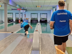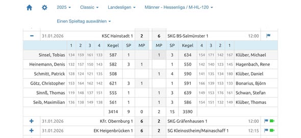 Gegen Hainstadt fehlte auf Seiten der Gastgeber Srecko Vidakovic, der im Hinspiel eine klasse Partie ablieferte. Bei der SKG begann wie gewohnt Michael Klüber, der eine grandiose Leistung ablieferte und mit seinen tollen 634 LP den ersten Punkt gegen Tobias Sinsel 587 LP einfuhr. Rene Hagenbach mit 550 LP gab seinen Punkt gegen Dennis Heinemann 582 LP wiederum ab. So konnte man zumindest mit einem kleinen Holzpuffer ins Mittelpaar abgeben.
