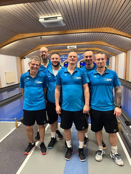 Das Schluss-Duo bildeten Stefan Schwan und Thomas Klüber. Stefan musste lediglich auf der zweiten Bahn seinen Satzpunkt an Manuel Groh abgeben, konnte die anderen drei Bahnen mit guten Leistungen für sich entscheiden und kam auf starke 584 Kegel. Manuel erspielte 543 Kegel. Thomas kämpfte sich in sein Spiel zurück und konnte, mit einer guten Schlussbahn, den Mannschaftspunkt für sich entscheiden. Er kam auf ordentliche 562 Kegel. Sein Gegner Mark kam auf 549 Kegel.