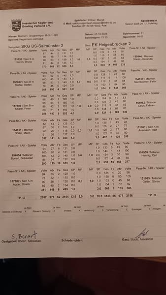 Zum Ende sollte es aber nochmal knapper werden, denn Sebastian Bonert sowie auch Oswin Appel hatten beide einen sehr schwachen Start. Beide konnten sich glücklicherweise noch etwas steigern und so behielt man am Ende die Oberhand. Bonert erreichte 519 LP und gab den Punkt gegen Carl Hennig 533 LP ab und Appel mit Punktverlust 499 LP gegen Sören Geiter 566 LP.